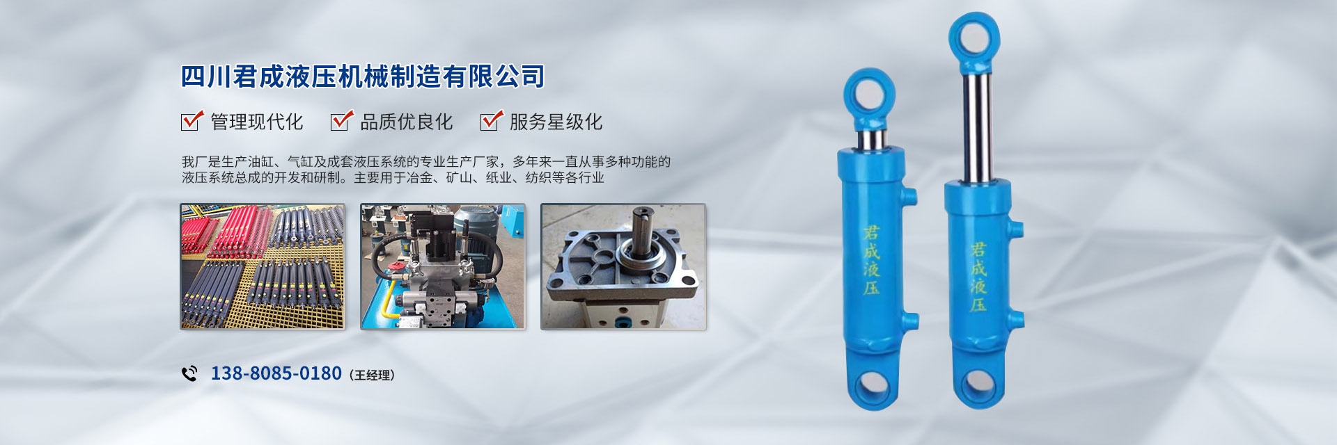 公司主導(dǎo)產(chǎn)品:液壓油缸HSG1全系列,YHG1型冶金設(shè)備缸,以及GHF1系列高壓液壓缸、多級缸等。扣壓式全系列液壓膠管以及特殊要求的液壓膠管總成。公司銷售項(xiàng)目還包括各種管接頭、多路閥、液壓鎖、液壓系統(tǒng)、頂磚機(jī)、全液壓式垃圾庫等,承接各類大、中型成套液壓系統(tǒng)的設(shè)計(jì)制造、安裝和調(diào)試服務(wù)。